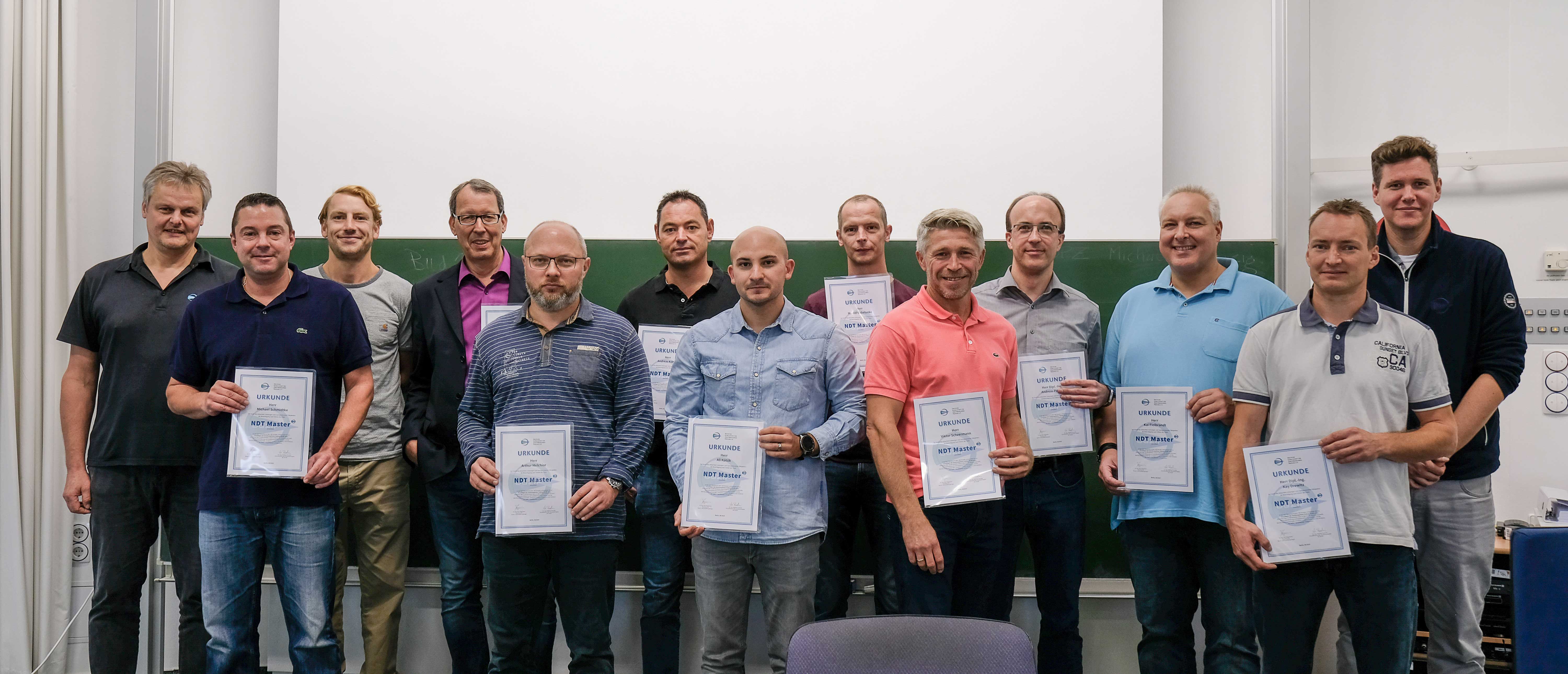Der "NDT-Master®" ist ein geschützter Titel, der Stufe 3-Personen nach intensiver Ausbildung bei der DGZfP verliehen wird. Als Anerkennung erhalten die Titelträger eine Urkunde und ein Präsent.